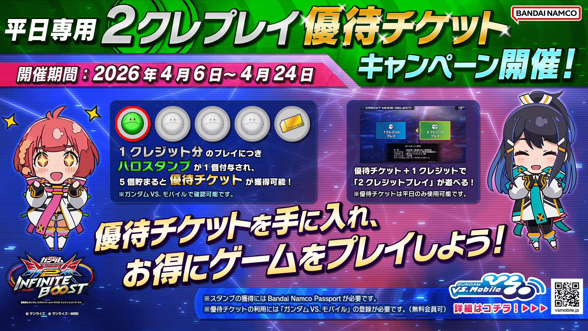 - キャンペーン中に連動サイトに登録しているBandai Namco Passportを変更した場合、変更前のカードでプレイされたハロスタンプ/優待チケットは引き継がれません。