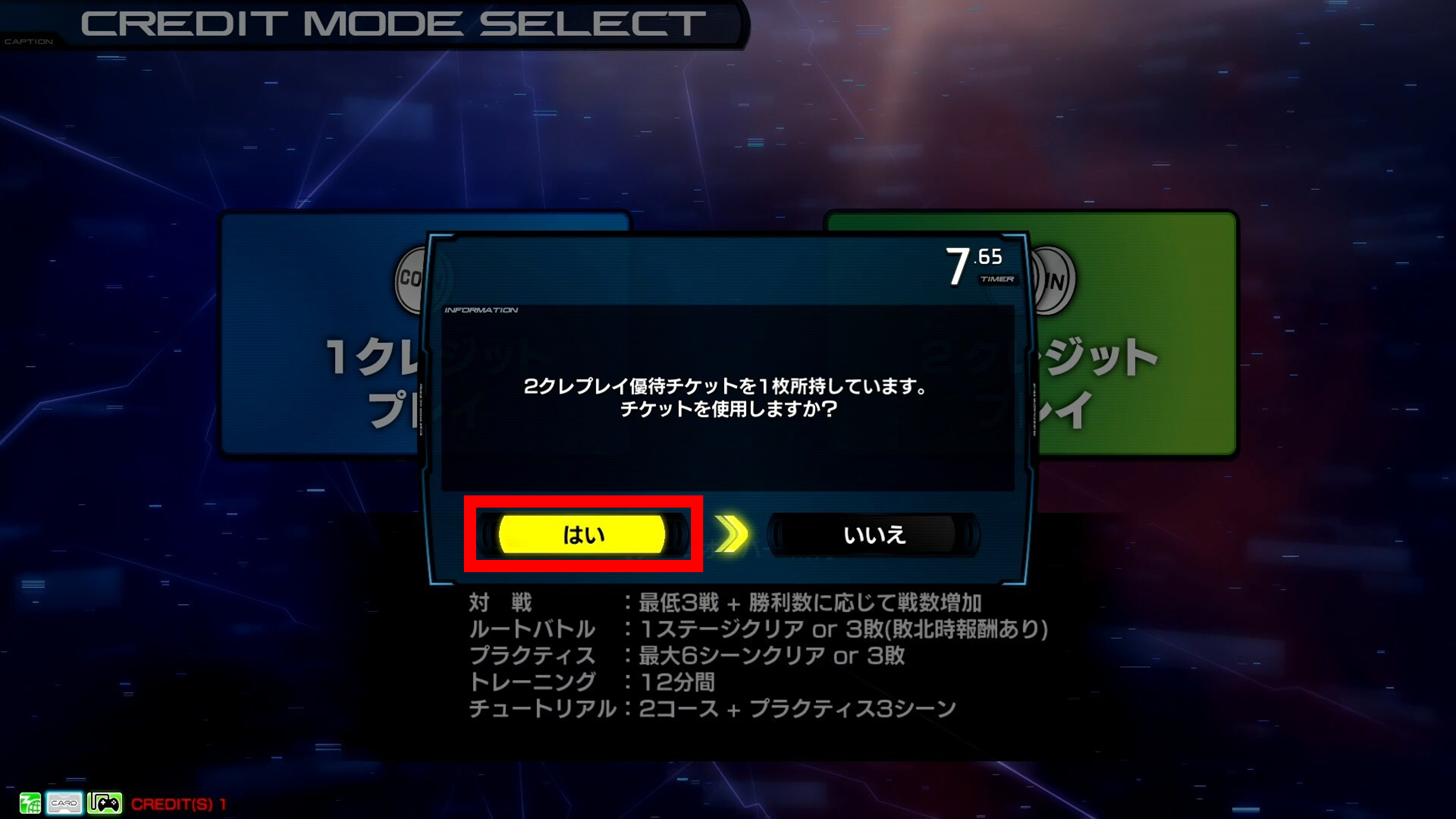 優待チケット+1クレジットで「2クレジットプレイ」が遊べる!