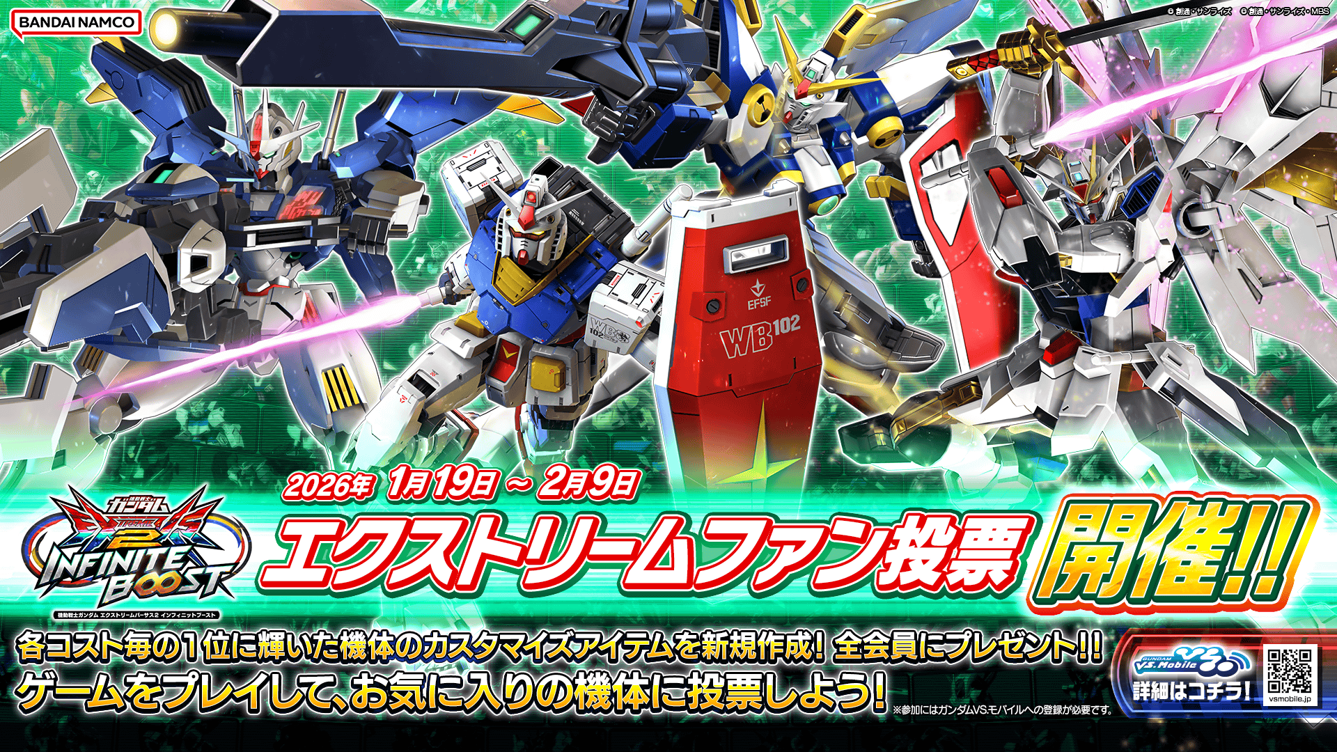 今後とも「機動戦士ガンダム エクストリームバーサス2 インフィニットブースト」ならびに「ガンダムVS.モバイル」をよろしくお願い致します。
